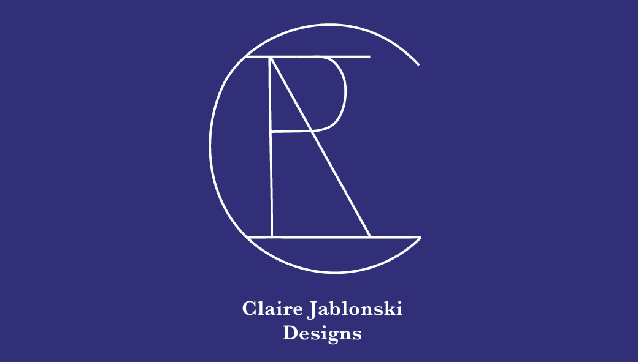 For the typography of "Claire Jablonski Designs," Baskerville emphasizes classic sophistication. The balanced serif structure reflect precision and artistry behind the design, evoking a sense of tradition and craftsmanship.